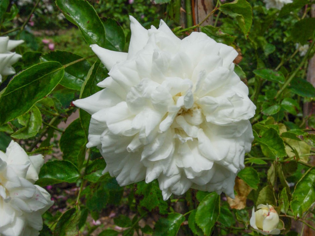 明るい色合いの照り葉、350cmから500cm高さまで達する大株となるランブラーです。シュートを盛んに出すため、ピラー仕立てには不適、大きめのフェンス、パーゴラなどで春の開花を楽しむのが、この品種の特徴をもっとも生かす方法ではないでしょうか。