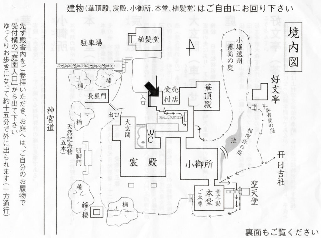境内図にあるように宸殿があり、小規模ながらも平安の世の御所の雰囲気を感じることができます。