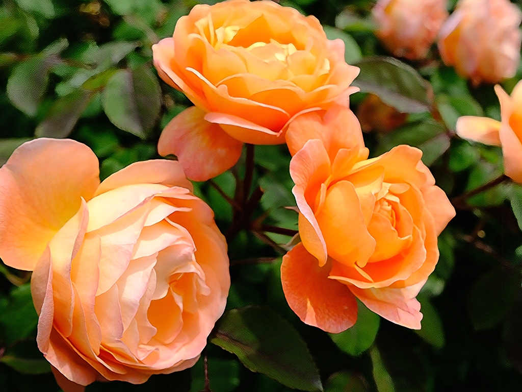 オレンジまたはコーラル(珊瑚色)となる花色。気候や環境により濃淡が出やすいようです。つぼみの先端などに濃いオレンジ・レッドが入り、それが開花した後に残り、花弁の外縁などに色濃く染まることもあります。
