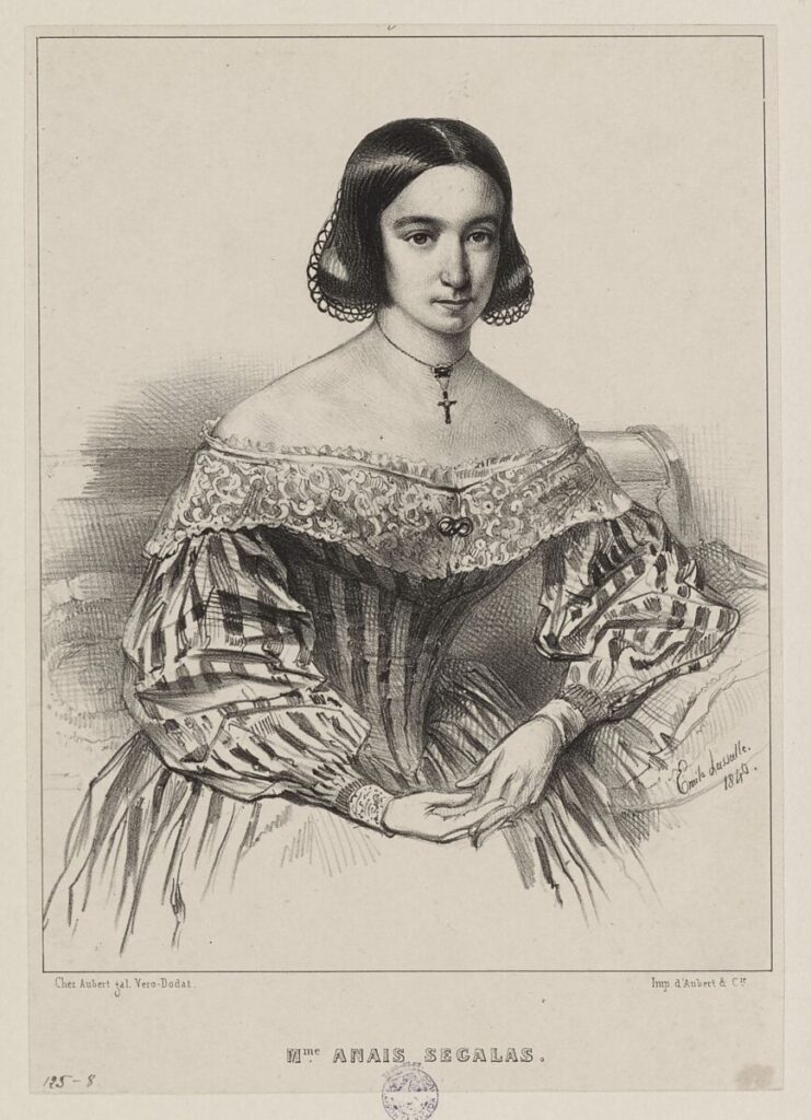 1814年、パリに生まれたアナイスは幼年期より詩才を発揮し、15歳で王立裁判所の弁護士、ヴィクトール・セガラスと結婚、16歳のときには最初の詩集『レ・アルジェリエンヌ(Les Algeriennes:”アルジェリアの女”』を刊行しました。